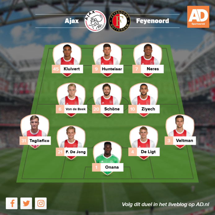 Van gaal ziet finalepotentie in briljant ajax. Hakim ziyech frenkie de jong donny van de beek lasse schone matthijs de ligt en daley blind. De leiding van vanavond is in handen van clement turpin en de wedstrijd is te volgen via veronica en ziggo sport.