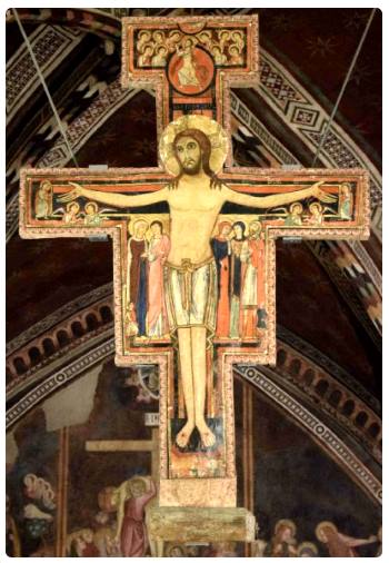 Parliamo adesso di un celebre crocifisso quello di san damiano storica icona davanti alla quale francesco dassisi mentre pregava accolse linvito del signore a ricostruire la sua chiesa. Dinnanzi a lui ora pregano le clarisse lordine fondato da santa chiara.